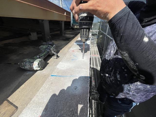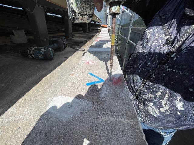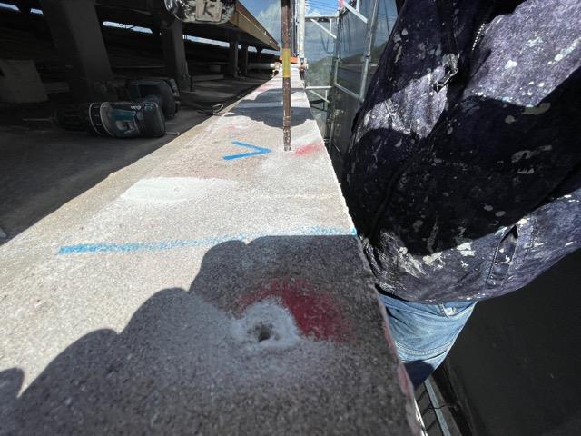 【笠木モルタル天端ピンニング状況】
