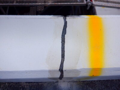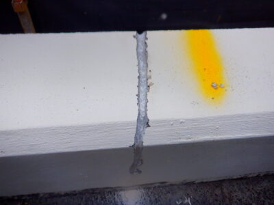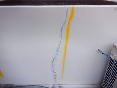 台風による揺れ+強烈な紫外線でクラックが進行しやすい環境です。
