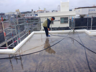 ホコリや汚れを除去し、専用プライマーで密着力を高めます。